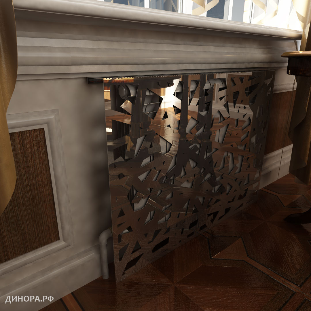 В отличие от пластиковых и деревянных, металлические экраны радиаторов не коробятся и не трескаются со временем, негорючи и хорошо проводят тепло. На них может быть вырезан любой узор или рисунок. Прочность металла позволяет изготовить тонкие линии и ажурные орнаменты, недоступные для МДФ или дерева.