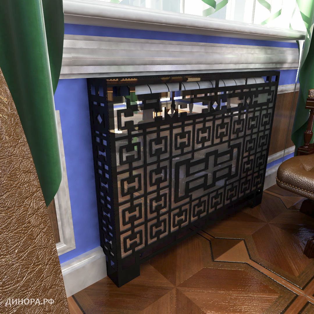Декоративные экраны могут быть изготовлены с самым разным узором. Если прорези узора слишком крупные, можно с обратной стороны радиатора закрепить мелкую сетку из латуни или нержавеющей стали.