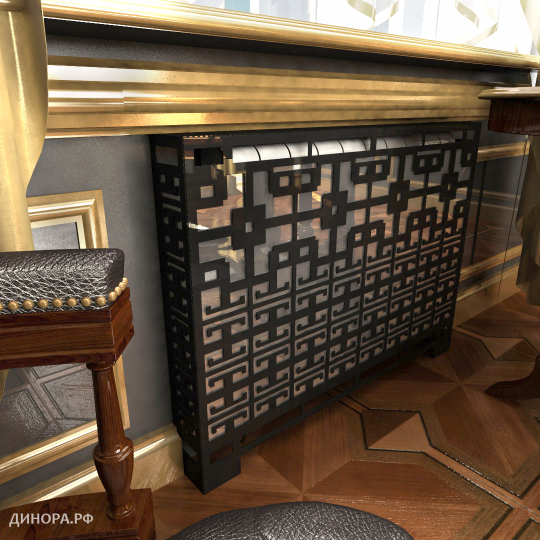 В отличие от пластиковых и деревянных, металлические экраны радиаторов не коробятся и не трескаются со временем, негорючи и хорошо проводят тепло. На них может быть вырезан любой узор или рисунок. Прочность металла позволяет изготовить тонкие линии и ажурные орнаменты, недоступные для МДФ или дерева.