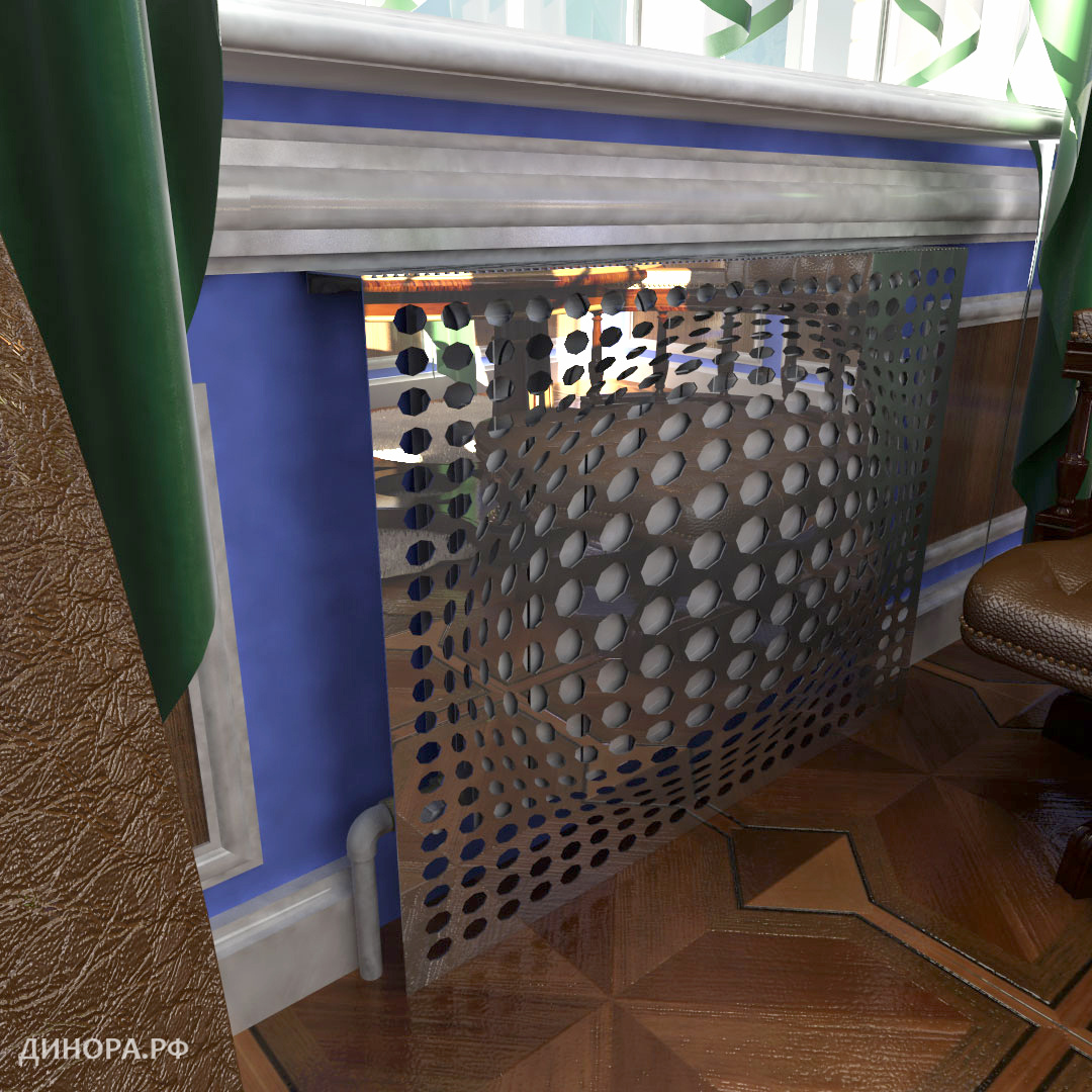 В отличие от пластиковых и деревянных, металлические экраны радиаторов не коробятся и не трескаются со временем, негорючи и хорошо проводят тепло. На них может быть вырезан любой узор или рисунок. Прочность металла позволяет изготовить тонкие линии и ажурные орнаменты, недоступные для МДФ или дерева.