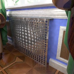В отличие от пластиковых и деревянных, металлические экраны радиаторов не коробятся и не трескаются со временем, негорючи и хорошо проводят тепло. На них может быть вырезан любой узор или рисунок. Прочность металла позволяет изготовить тонкие линии и ажурные орнаменты, недоступные для МДФ или дерева.